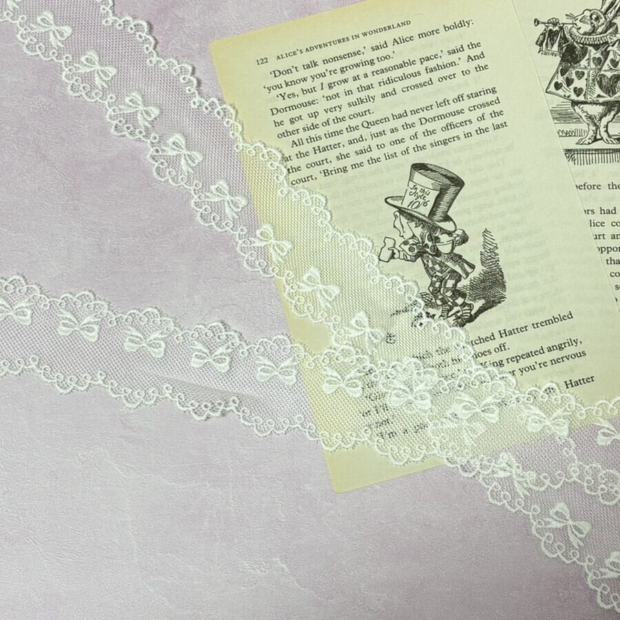 【日本製】リボン柄♡両山チュールレース 約4cm幅 オフ白/ep-109