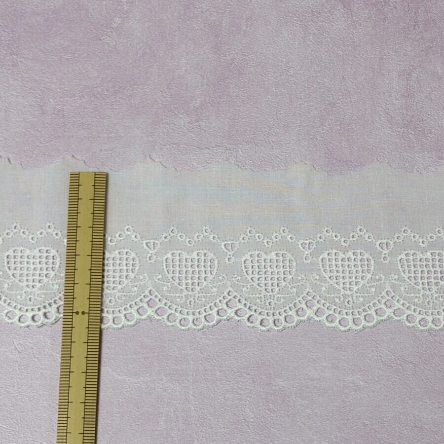 【日本製】ハート♡刺繍の片山綿レース 約5.5cm幅 オフ白/ep-009
