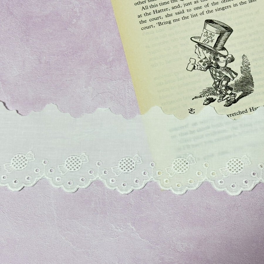 かわいらしいキャンディの刺繍が入った綿レース